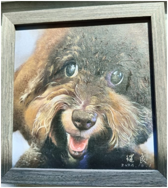 因爲它已高齡,幾個月前好像有預感的請人為它畫了一幅油畫,現在看油畫中它的笑容燦爛,心中油然熱起來不知是什麽的反應.只知道春天它走了,我們秋天便會習慣!